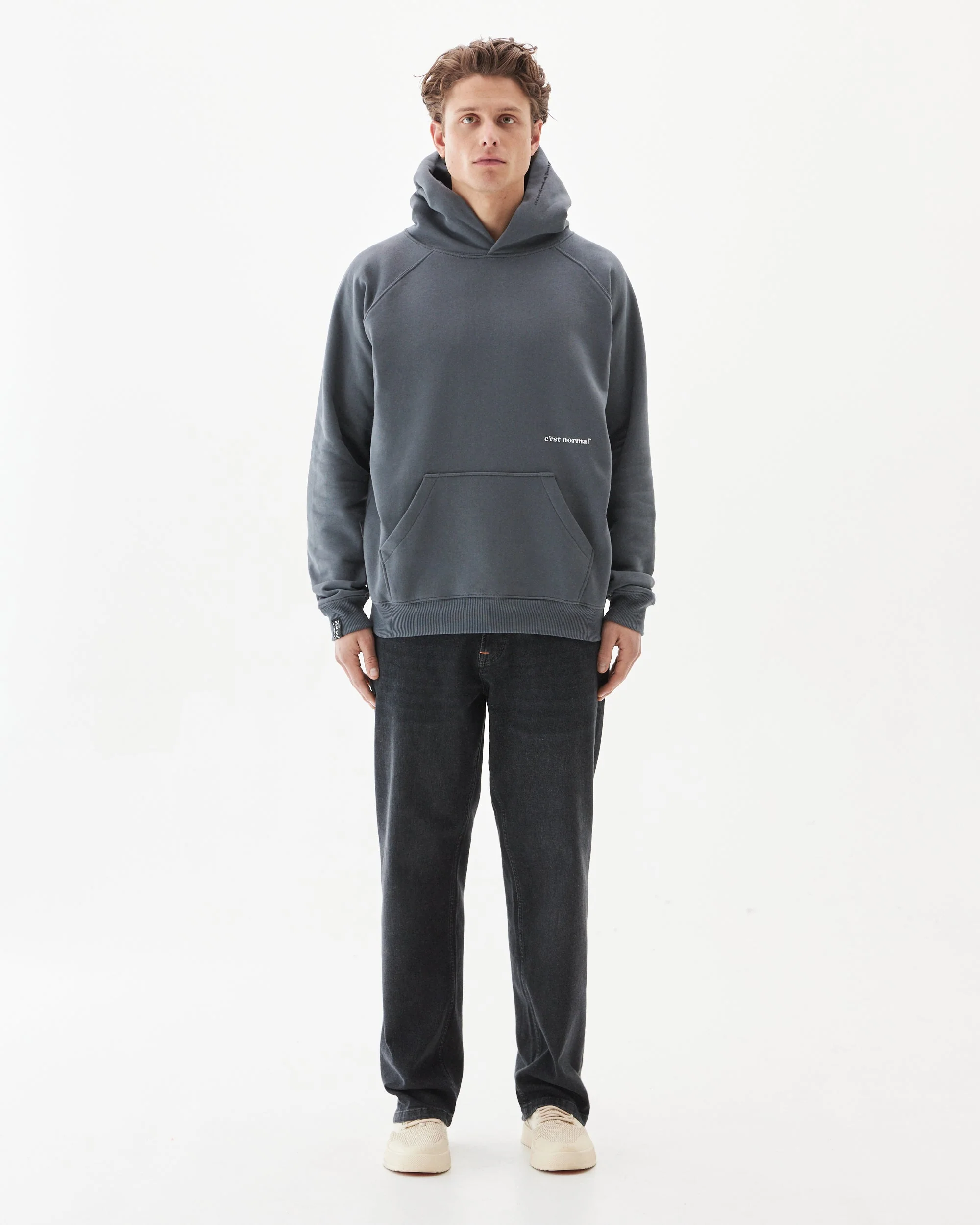 The Coastal Kangaroo Hoodie has the same roomy fit you love, with no drawstrings on the hood and a lower-key logo on the front left (below the chest), so the look is more streamlined.